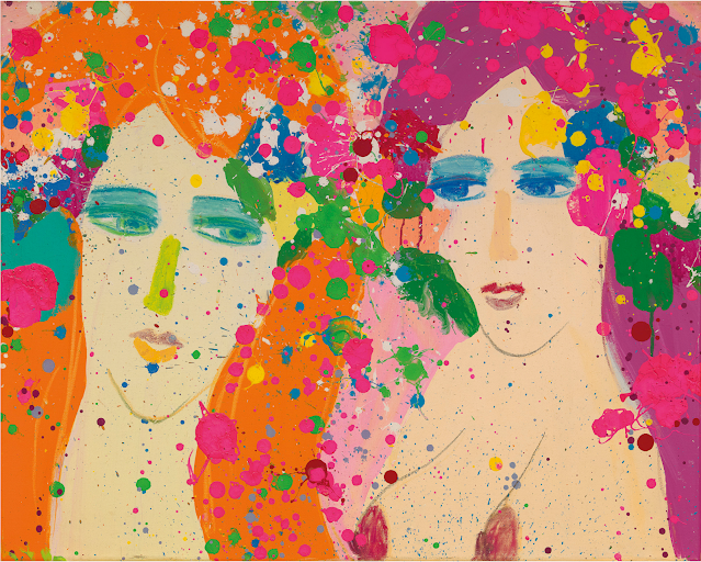 Two Ladies with a Horse of Tangerine Colour, c. 1990