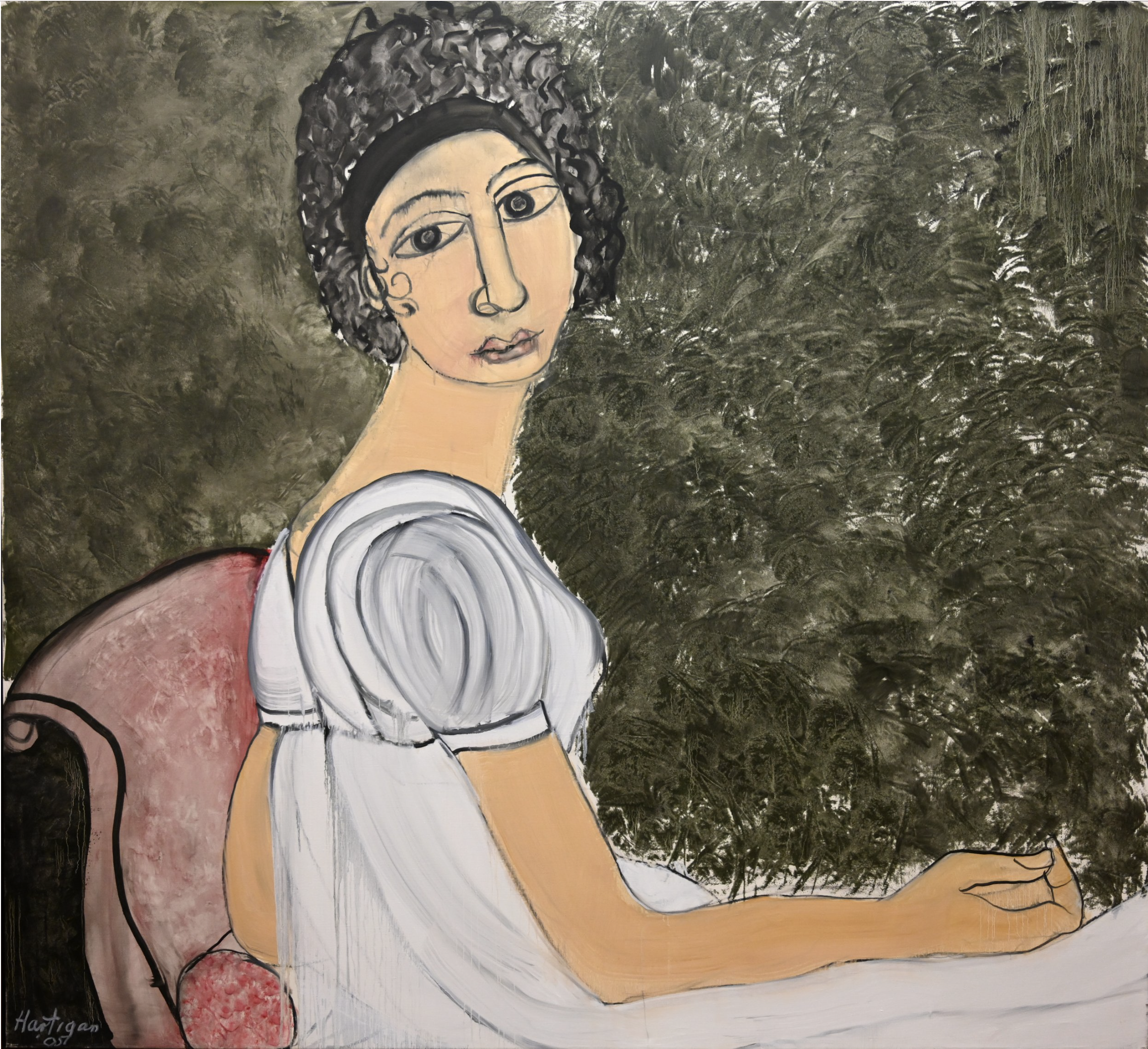 signed and dated 'Hartigan '82' (lower left); signed again twice, titled twice and dated again twice 'HARTIGAN "THE MUT HUT" 1982 "THE MUT HUT" HARTIGAN '82' (on the stretcher)